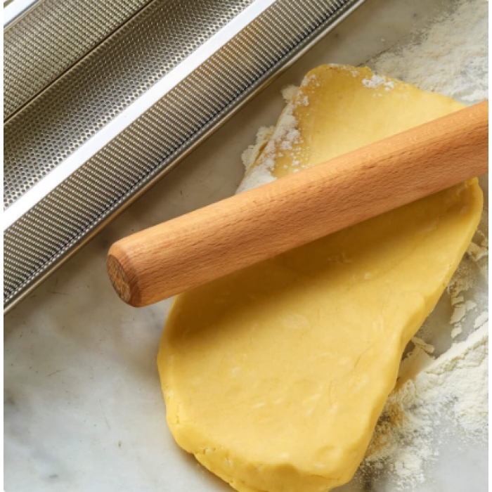 Скалка изготовлена из бука — плотной и непористой древесины, которая обеспечивает гигиеничную поверхность и предотвращает прилипание теста. Это делает процесс приготовления более чистым и удобным.