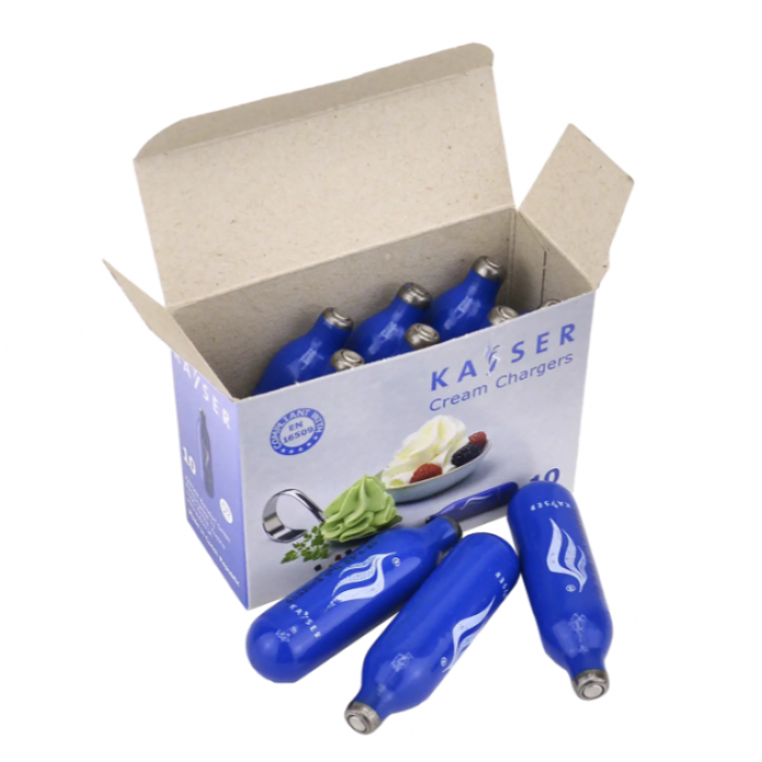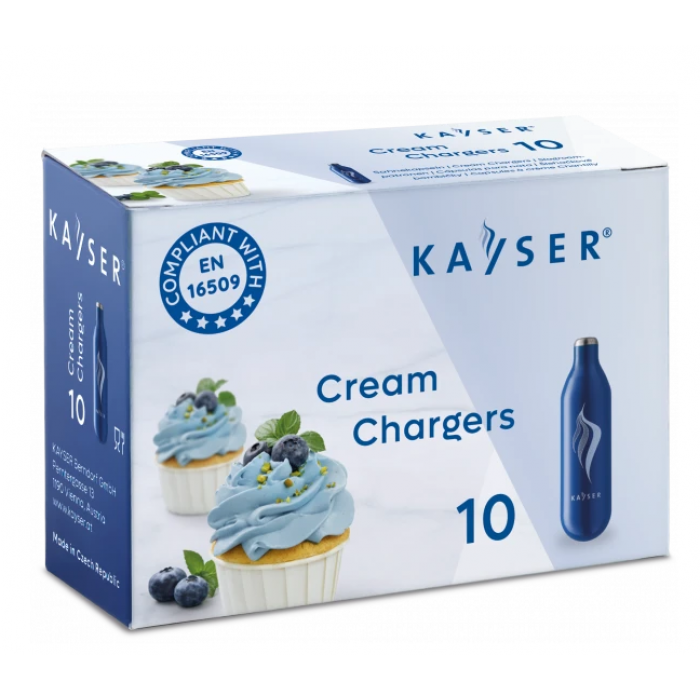 Зарядные баллончики N2O для сифона для сливок KAYSER (10 шт, синие) предназначен для сифонов сливок и подходит для десертов, кремов и гастрономических подач.