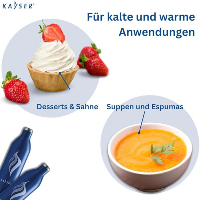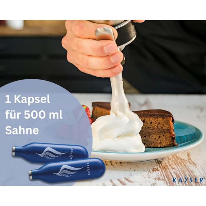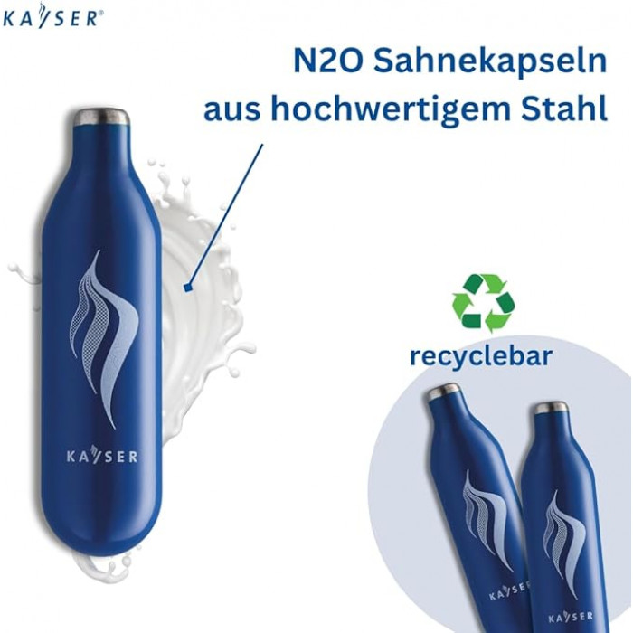Зарядные баллончики N2O для сифона для сливок KAYSER (50 шт, синие) предназначен для сифонов сливок и подходит для десертов, кремов и гастрономических подач.